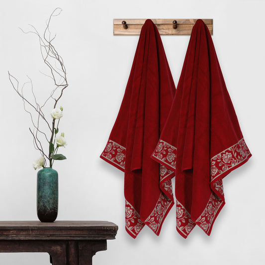 Gharana Edit – Scarlet Bloom / Set of 2 Bath Towels