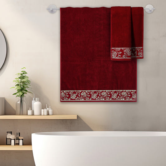 Yarn Dyed Golden Flower Border Print Jaquard Erget Bath & Hand Towel 600 GSM Pack of 1 Bath and 1 hand Towels
