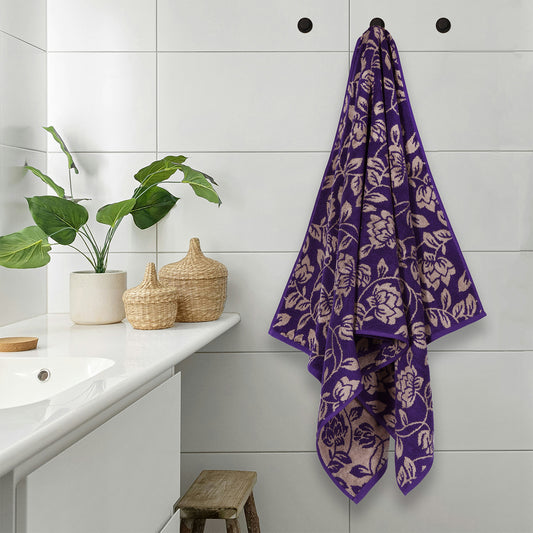 Yarn Dyed Golden Flower Border Print Jaquard Petunia Bath Towel 600 GSM Pack of 2 Bath Towels
