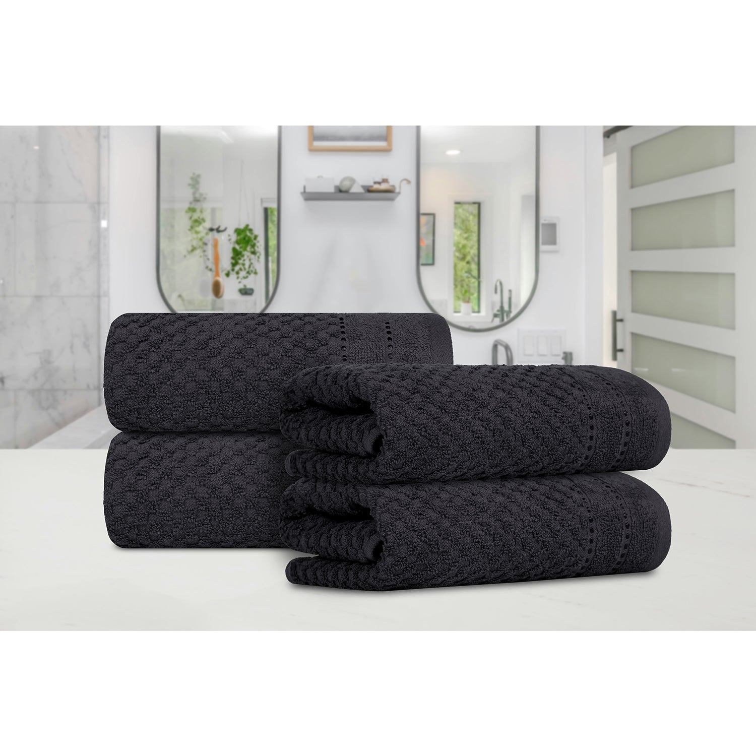 Popcorn Charcoal Hand Towel 400 GSM Pack of 4 Hand Towel