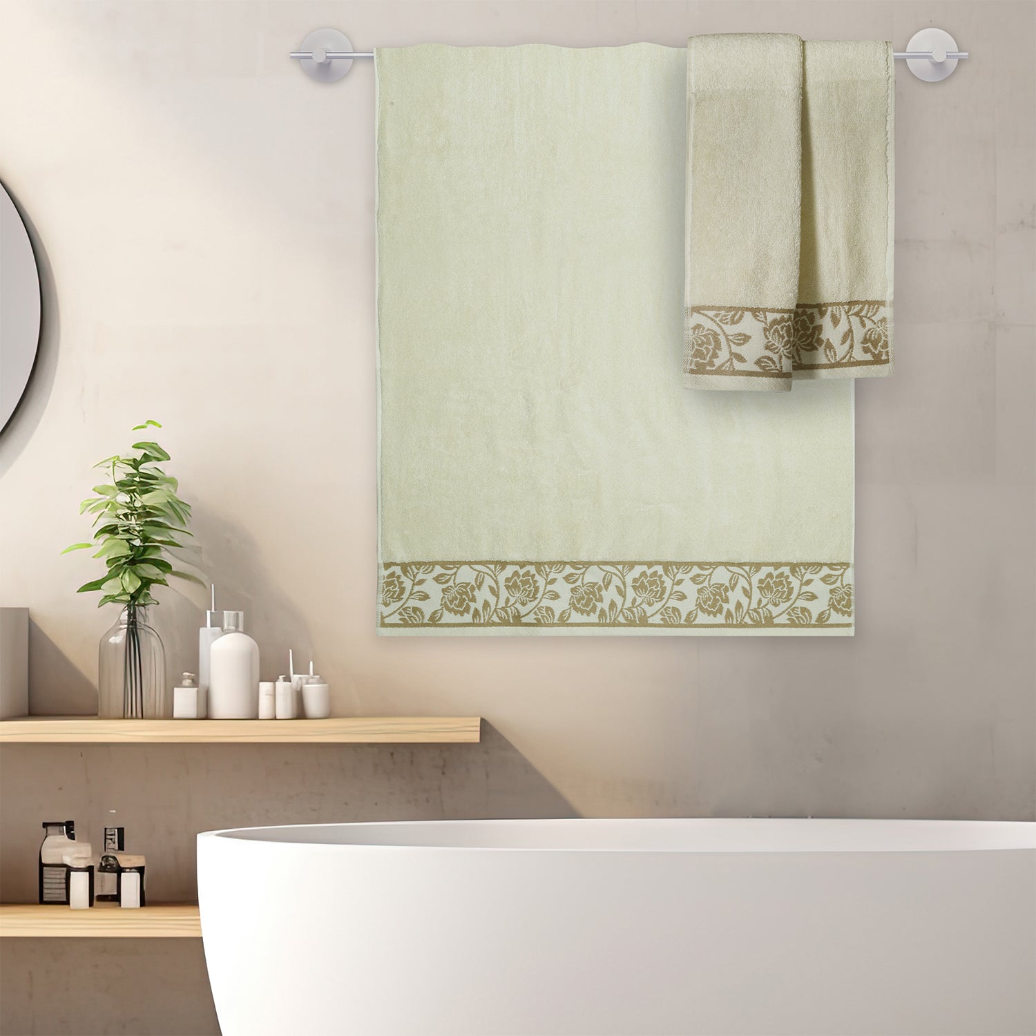 Yarn Dyed Golden Flower Print Jaquard Erget Bath & Hand Towel 600 GSM Pack of 1 Bath and 1 hand Towels